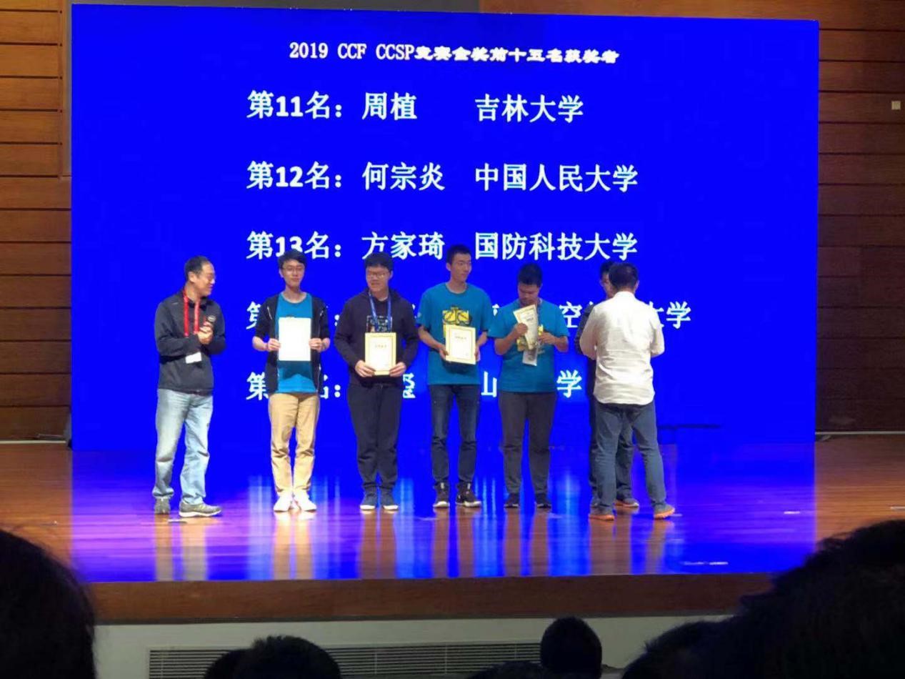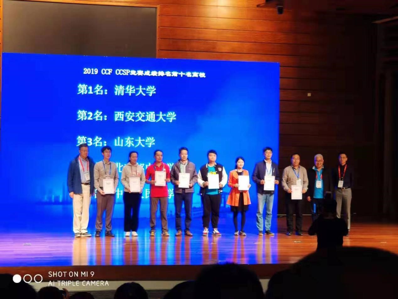第四届大学生计算机系统与程序设计竞赛(CCSP2019)于2019年10月16日在苏州市职业大学举行。全国共有75所高校的461名优秀选手参赛,学校数较去年增加21%。经过约12个小时的激烈角逐,共产生金奖47个、银奖92个、铜奖138个。我校有10名优秀选手参赛,共获得金奖1个(第11名,有现金奖励)、银奖2个、铜奖3个,学校排名列第9位。近几年,CCSP赛题数量增加至5道,题型不断创新,参赛学校的级别和规模都得到了极大提升。这次比赛中,我校的选手个人排名和学校排名都达到了一个新的高度。