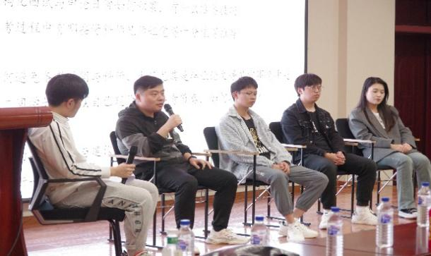 在四位师兄师姐分享后,本场活动的第二部分“交流分享”环节以座谈会的形式开展。座谈由研会综合事务部部员关振海同学主持,邀请四位经历满满的师兄师姐上台,就“地域与岗位选择”、“公考时间规划”、“笔试面试”、“探寻选调与事业编制”等热点话题展开讨论。本环节话题均来自研会对参会同学个人疑惑的提前收集,并在讨论过程中不时邀请台下同学们提问并参与讨论,同学们延续了第一期活动的热情,在沟通与交流中,现场气氛不断被活跃,观众畅所欲言。台下观众的积极参与也打开了师兄师姐们的交流之窗,在热烈分享的同时,在向师弟师妹们播撒更多有益的养分。
