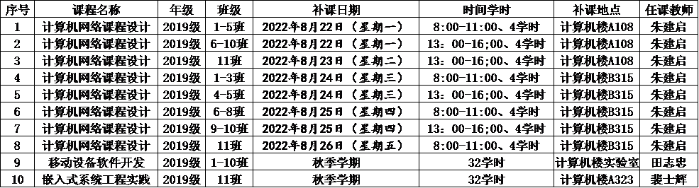 二、补课安排为: