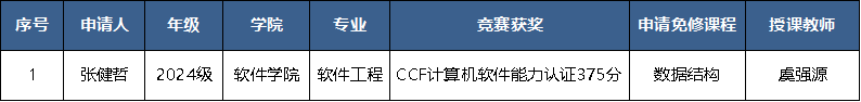 学院于2025年10月开展了程序设计类竞赛获奖学生申请课程免修工作,根据学生申请,经学院竞赛指导教师免修工作小组专题讨论,教学委员会通过,课程免修结果如下: