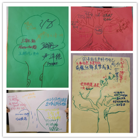 热身游戏后,同学们随机分组,在依次进行简短的自我介绍后,开展“快乐传递”、“信心启迪”、“信任之旅”等小游戏。“快乐传递”活动让同学们将自己的想法和祝愿写在卡片上,鼓励同学们主动交际,不惧未来;“信心启迪”活动让同学们写下自己的三个小目标,为今后的大学生活明确前进方向;“信任之旅”活动,所有同学分批次体验“盲人”感觉,在没有语言沟通的情况下由“引路人”带领到达终点,增强同学间相互信任。以上活动使同学们收获了同学情谊,增强了集体意识,挖掘了自身潜能,调整了自己心态,明晰了努力方向,增进了彼此友谊。随着活动接近尾声,在《相亲相爱的一家人》的背景音乐声中,同学们拿起手中的画笔,共同绘制了一幅《团体树》,写下新学期的美好祝愿。至此,91论坛
