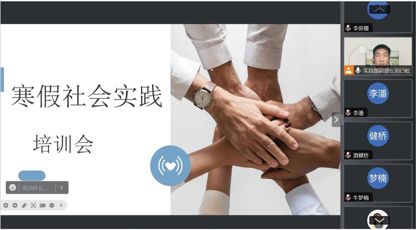 团委实践部在线上组织开展了寒假实践培训会。此次培训旨在帮助学生们更好地理解和准备即将到来的寒假社会实践活动,提升他们的实践能力和综合素质。