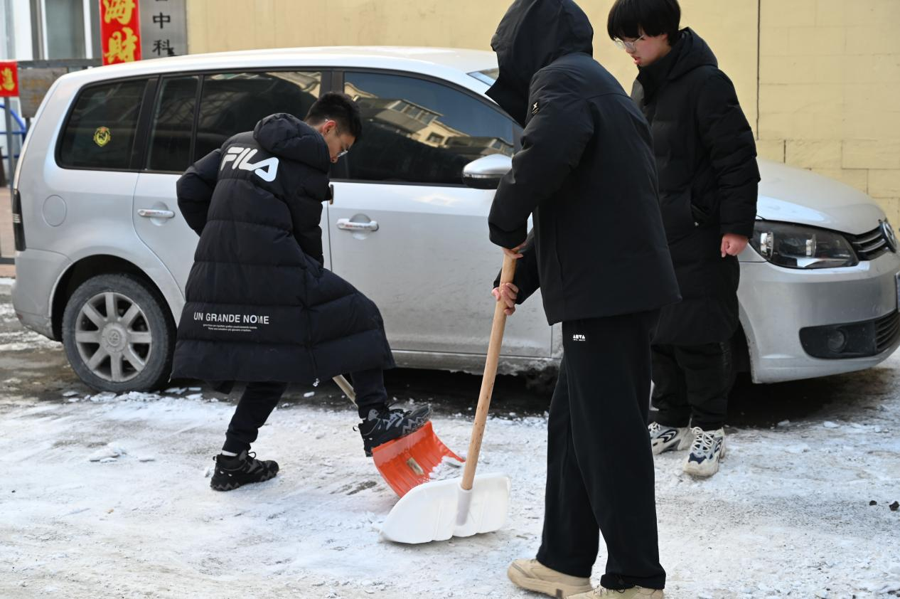 活动当天,志愿者们首先对社区内的主干道、人行道进行了细致的调研,向社区工作人员详细了解积雪的情况和居民的需求,随后志愿者们迅速行动起来,分工合作,有条不紊的开始铲雪除冰作业。在了解到社区内老年人较多后,考虑到居民的出行安全,志愿者们着重对社区内健身设施周围、各单元楼门口、停车场、敬老院周边区域的残留冰雪进行清理,确保居民出行的安全与顺畅。尽管积雪较厚,路面难行,但同学们满怀活力,努力做到“扫过即净,不留余冰”,收获了社区居民及工作人员的广泛认可和赞誉,充分展现了91论坛