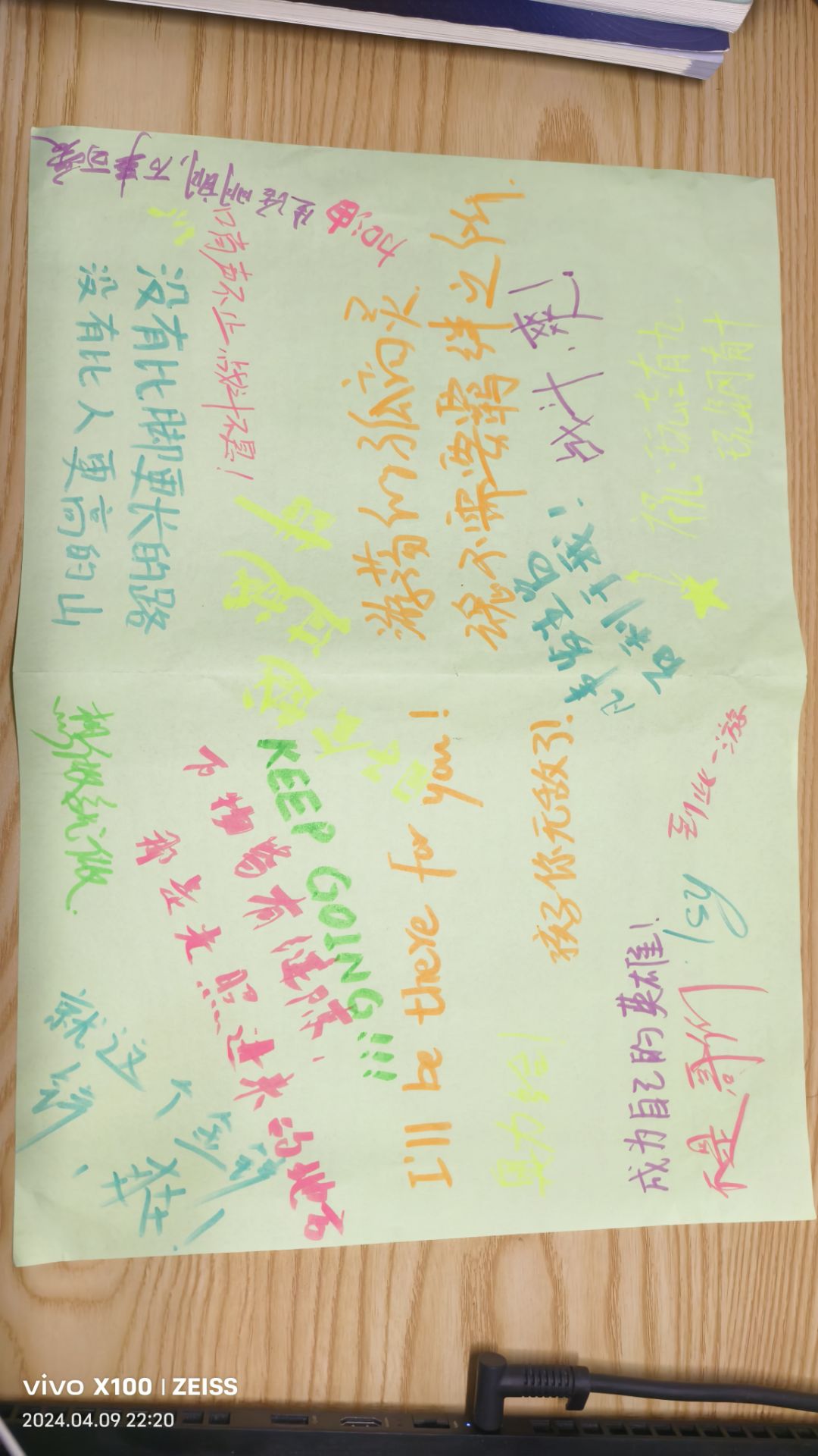 本次“心灵沟通”主题班会旨在鼓励同学们坦诚地分享自己的情绪,用心倾听他人的心声,共同感受情绪的奇妙力量。在这个温暖的分享空间里,同学们产生了强烈的共鸣,对情绪的管理与表达有了更深刻的认识,缓解了日常生活和学习中的压力,学会了以积极的态度来处理各种情绪。此次活动引导同学们更加关注个人心理成长,更好地处理人际关系,培养了同学们团结协作的能力,促进学生在相互支持和合作中共同成长。