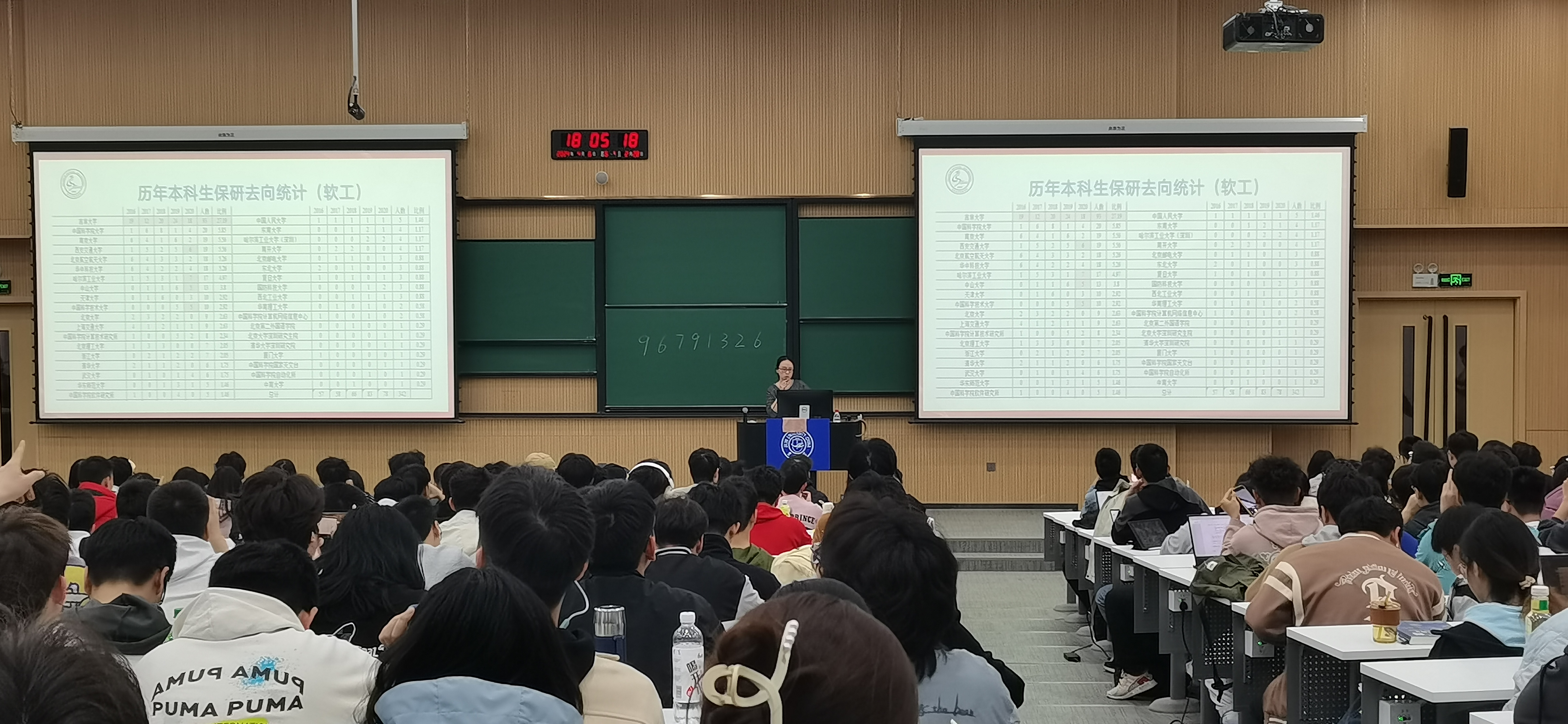 首先,戴老师基于2020-2023届毕业生的去向统计数据进行分析,向同学们展示了就业和升学人数及其所占比例,提醒同学们要了解自身的优劣势和特点,在客观评价自我能力的基础上做出适合自己的职业选择。随后,戴老师介绍过去5年学院保研学生的去向和人数、学业成绩、素质类项目加分等情况,具体讲解保研涉及的项目情况、夏令营注意事项等,并根据2020级学生的保研情况,对2021级学生的保研名额进行预估。同时,戴老师还分析2020级学生考研相关数据,详细介绍本校计算机和软件两个专业的初试和复试情况,并提醒同学们要慎重择校,强调备考过程中持续努力的重要性。最后,针对具有不同就业意向的同学,戴老师对过去5年学院学生签约大厂、小微企业、国有企业等就业单位的实际情况进行介绍,重点对2023年秋招的签约情况进行说明,叮嘱拟就业的同学们提前准备个人简历,利用网络资源提高编程能力,勇于尝试,在实习过程中注重积累经验,不断丰富阅历,在未来的秋招中实现高质量就业。此外,戴老师还建议同学们及时关注学校发布的招聘信息,把握好各类工作机遇,针对出国和备考选调的同学,戴老师指出要选择适合自身的目标院校和单位,不能好高骛远,可以在多方了解相关信息的基础上做出正确的选择。