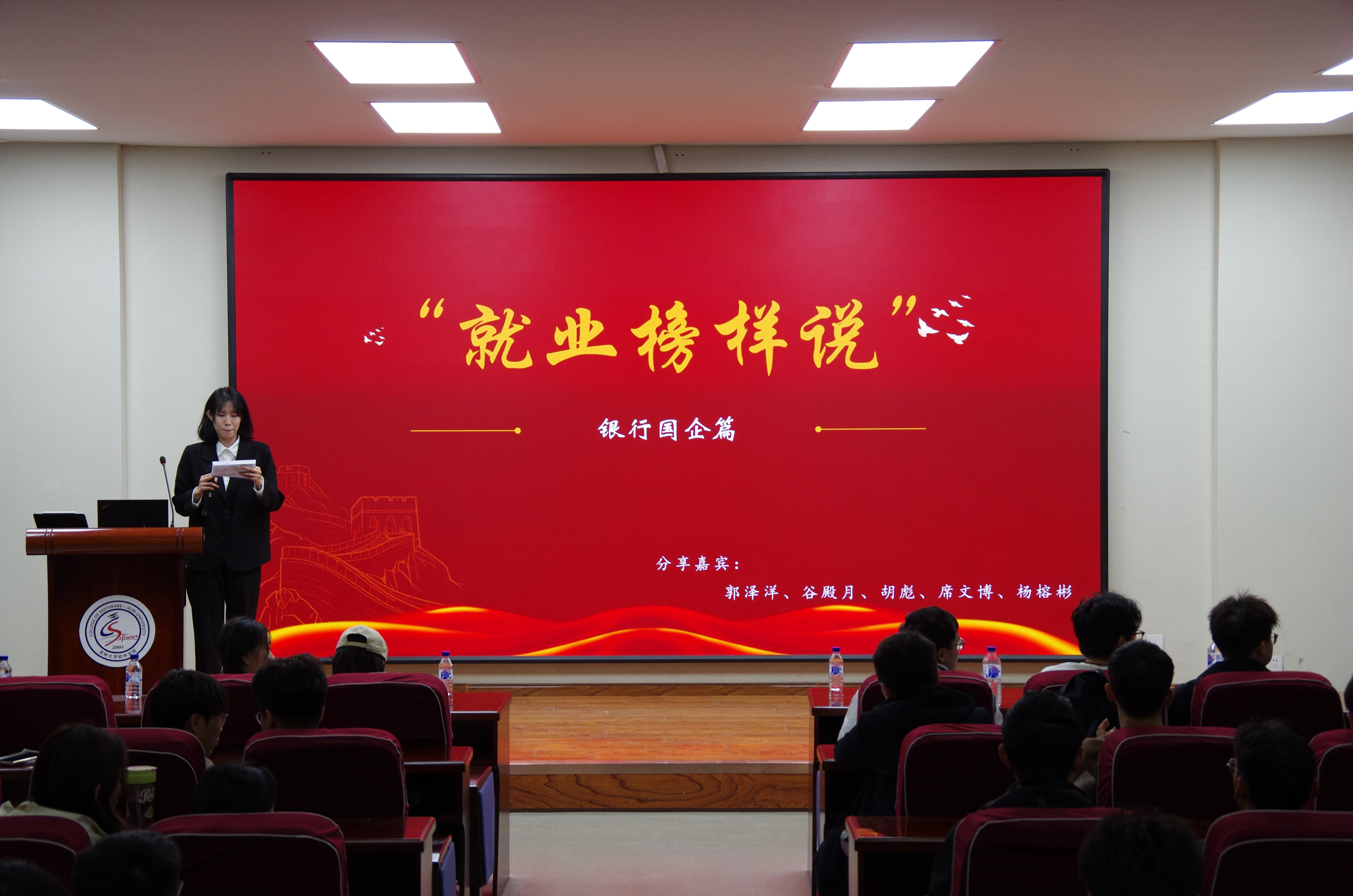 研究生会综合事务部的殷梓淇同学主持,邀请四位师兄师姐上台围绕“国企银行就业优势”、“准备国企银行与准备大厂的不同之处”、“国企银行的招聘信息获取渠道”以及“国企银行薪资待遇与发展前景”等备受关注的话题展开讨论。参会同学们纷纷对这种高度参与、信息量丰富的讨论形式赞誉有加,增强了他们对银行国企行业求职的理解与应对能力。在“就业榜样说——银行国企篇”收官后,两院研究生会迅速响应同学们的需求,建立两院银行国企就业内推群,实时发布各类实习信息、秋招的内部推荐机会,确保同学们能第一时间捕捉到心仪企业的招聘信息。