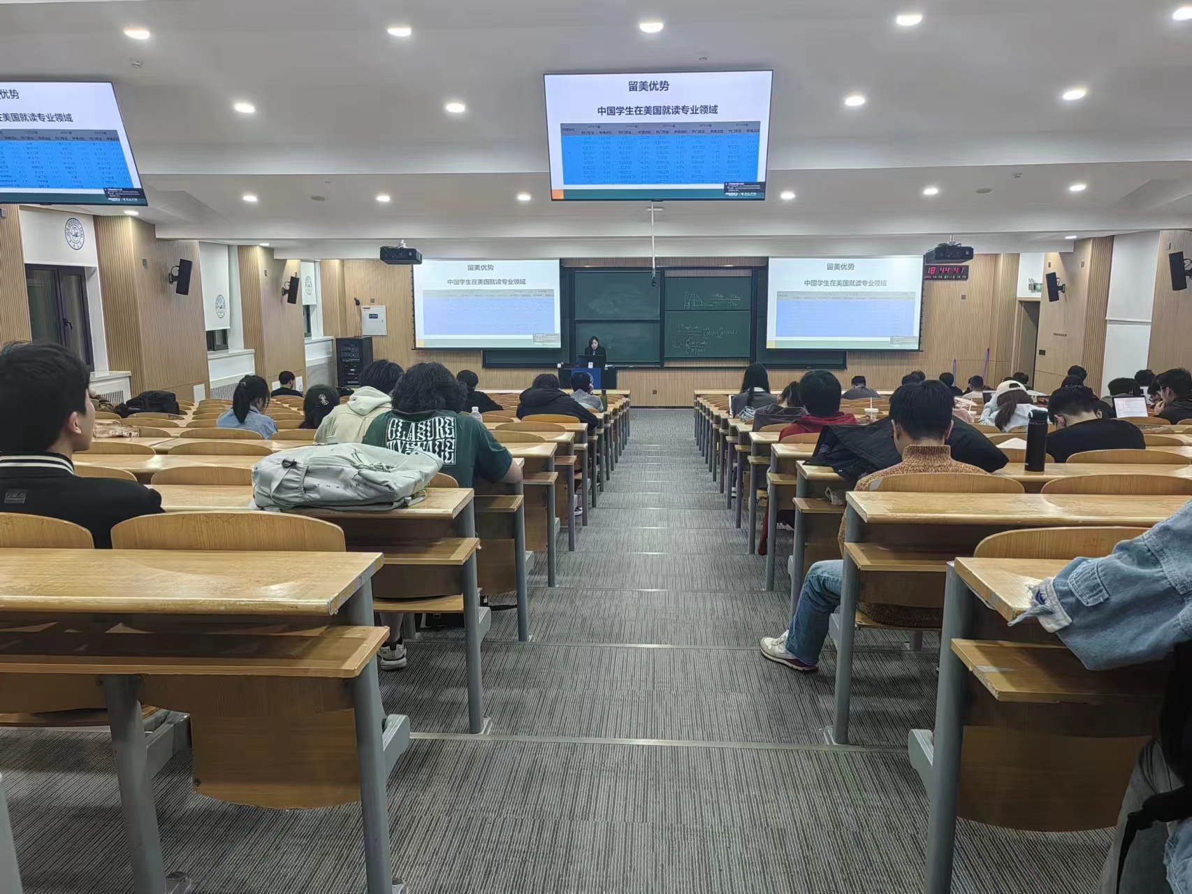 本次讲座为有意向出国留学的学生提供了信息咨询,引导同学们结合自身实际做好职业生涯规划,明确努力方向,激发了大家对留学的热情和期待。下一步,学院将致力于搭建更多的升学就业信息交流平台,为广大学子提供更好的职业规划与就业指导服务,助力同学们放飞梦想,拓路前行。