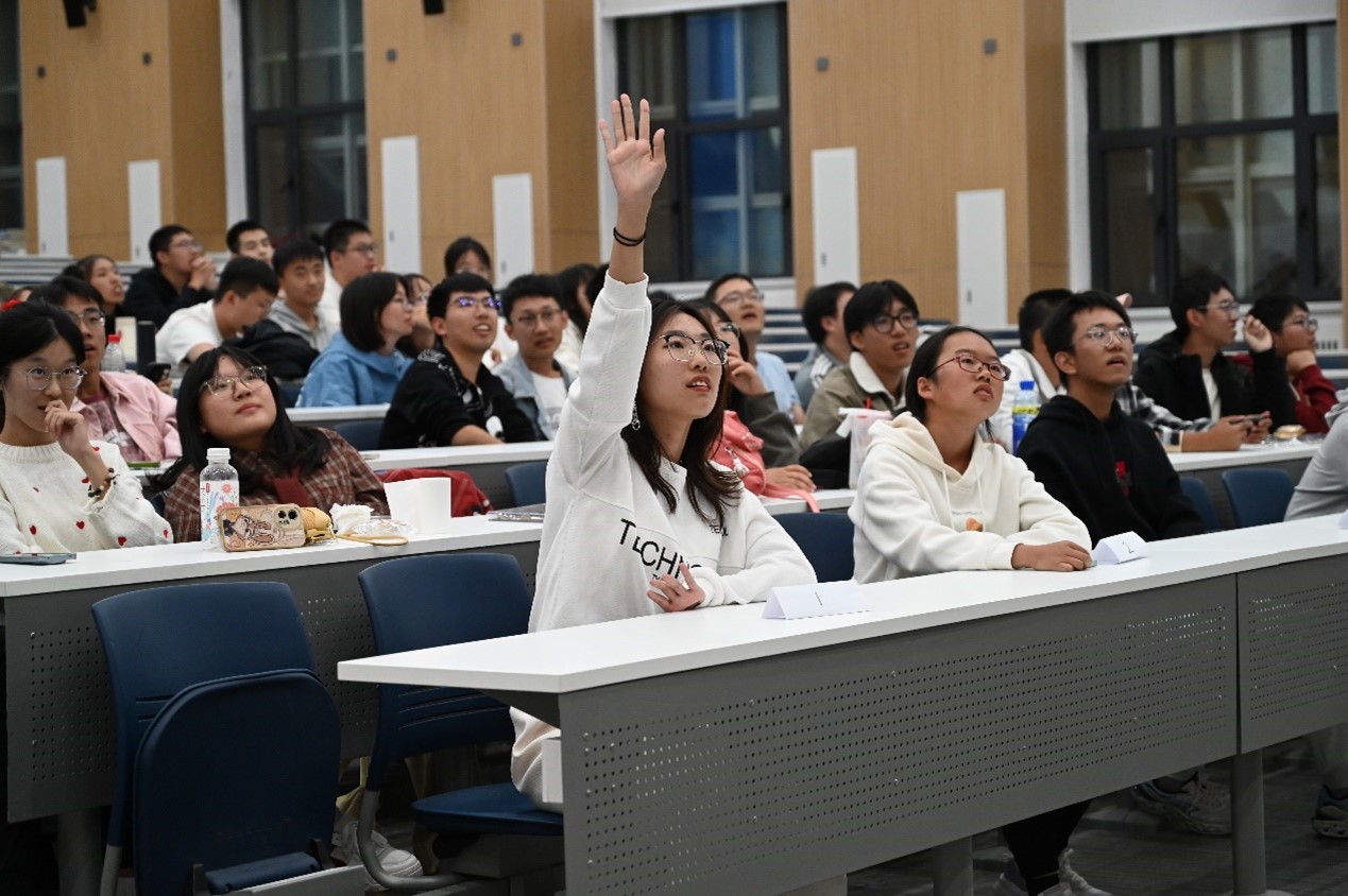 比赛正式开始后,现场气氛热烈,同学们踊跃报名、积极抢答,展现了高涨的参与热情。在一道要求根据线索猜诗人的题目中,选手们围绕“天才早慧”“溺亡北部湾”等提示展开了激烈的讨论,最终确认唐代诗人王勃为正确答案。还有一道考察古诗词中的声调知识的题目,涉及“今我来思,雨雪霏霏”中“雨”字的声调选择。答对的同学热情讲解了四声“雨”作为动词的用法,赢得了现场同学的高度认可。