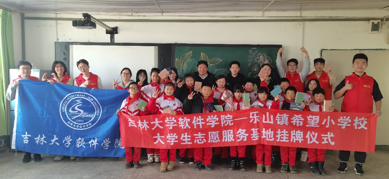 志愿服务队赴长春市朝阳区乐山镇希望小学开展支教活动,并举行大学生志愿服务基地挂牌仪式。此次活动由学院副书记侯晓宇和本科生辅导员王柏晨带队,学院团学负责人组成的志愿团队全程参与。