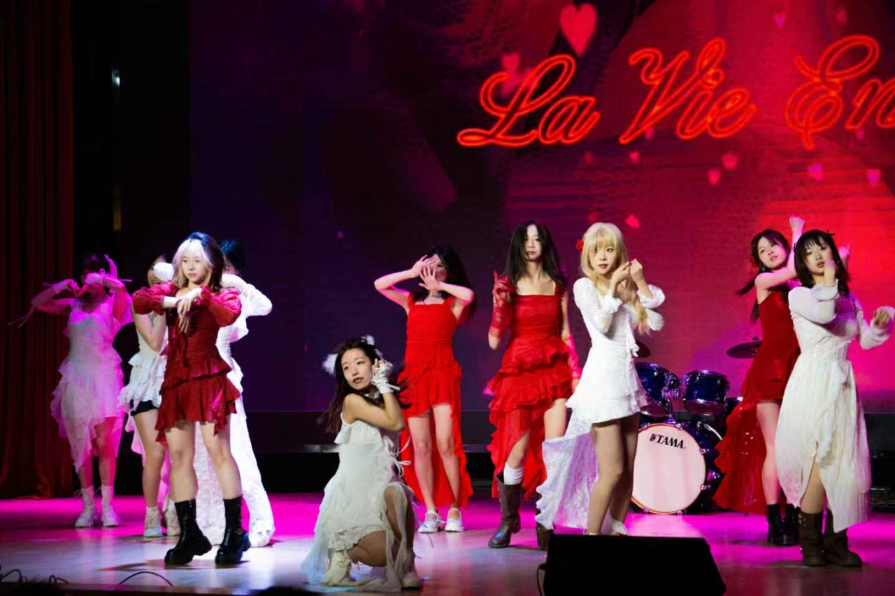 音乐节亮点纷呈,节目涵盖声乐演唱、器乐演奏、街舞、说唱、民族舞等多种艺术形式。开场曲目由第十七届校园歌手大赛冠军张以钧倾情演唱《Dear John》,深情旋律拉开序幕。随后,JustYe街舞社的《玫瑰人生》以法式浪漫为基调的爵士舞,用优雅肢体语言演绎经典香颂,红色裙摆与柔美灯光交织出如梦似幻的爱情絮语;十八吉他社《控制》《anchor》《skypecalls》《恐怖的房子》从弗拉明戈轮指到爵士和弦,四首歌曲展现吉他社对音乐边界的极致探索;HipHop社的《旧枷锁》以传统乐器采样碰撞新派街舞态度;马筝《天若有情》将古风戏腔与电子摇滚跨界融合,用高亢转音讲述乱世情缘,水袖舞动间尽显侠骨柔情;银美琪的《戏文说》将京剧唱腔与R&B转音结合,用现代编曲重构《牡丹亭》经典选段,传统与潮流在戏腔里碰撞新生。音乐节以JustYe街舞社《candy》《strategy》为结束,将整场氛围推向高潮。