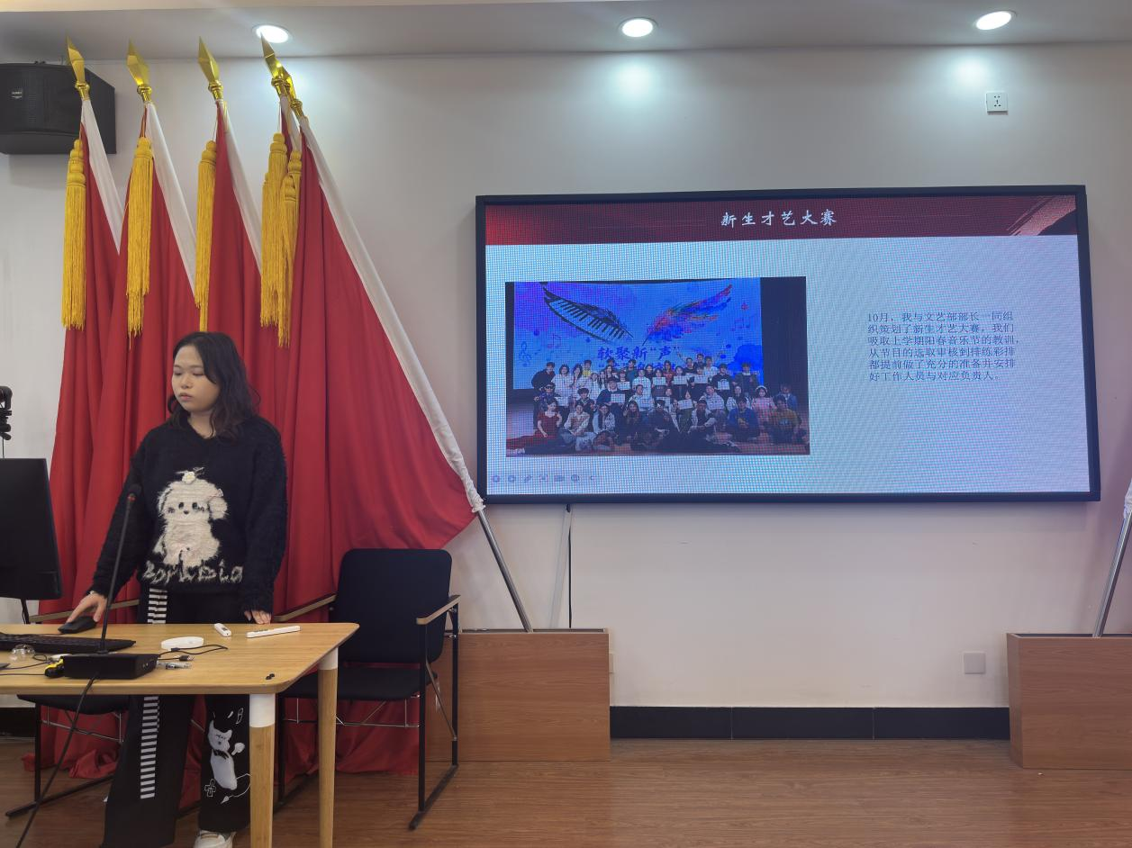 团学各部门工作合力,12月25日,我院团学2025-2026学年第一学期述职评议大会在王湘浩楼B340顺利召开。院团委负责人戴嘉宜老师及团学各部门负责人参会,各部门依次汇报履职情况,全面展现学期工作成果与团队建设成效。
